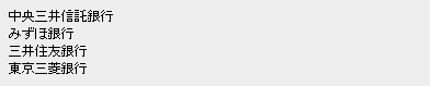 取引銀行 中央三井信託銀行 みずほ銀行 三井住友銀行 東京三菱銀行